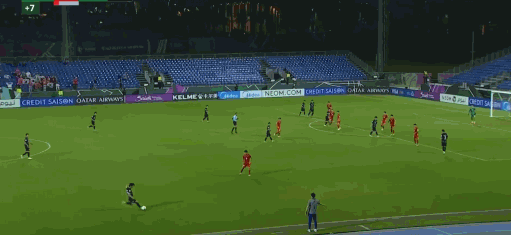 第14分钟,金道现禁区外远射,皮球直接打上看台