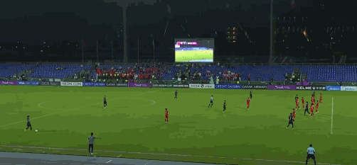 第20分钟,越南U23任意球被顶出,阮泰山抽射偏出